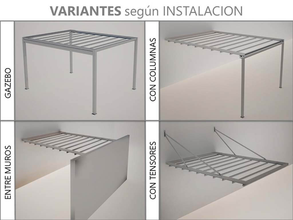 - Instalación con columnas, entre muros, con tensores o gazebo