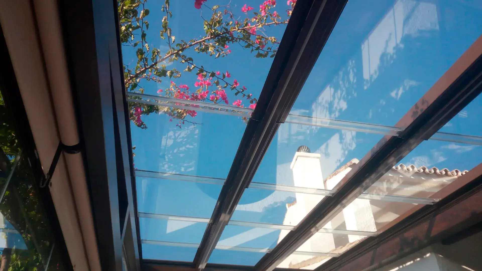 Nuestros techos de vidrio están fabricados con vidrio de seguridad laminado 4+4, resistente a impactos y a las condiciones meteorológicas adversas.